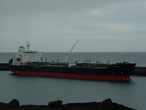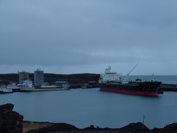 Sementflutningaskipið Cemsea og olíuflutningaskipið Alpine Magnola í Helguvík í morgun