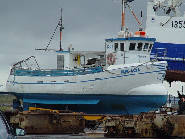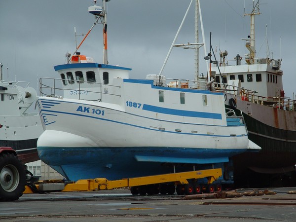 1887. Bresi AK 101, sem samkvæmt skráningu hét þó Arnþór EA 102, í Njarðvíkurslipp þar sem hann var tekin upp og fluttur síðan til Sandgerðis © myndir Emil Páll í ágúst 2008