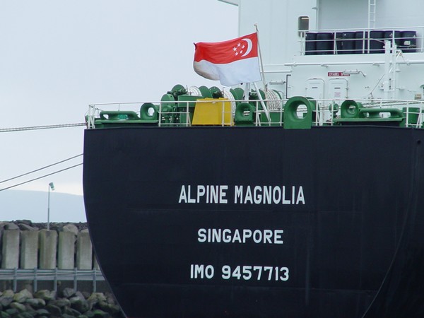 Alpine Magnolia er með heimahöfn í Singapore og er svo nýtt að það ég fann það ekki á erlendum uppflettisíðum, enda sjósett á þessu ári
