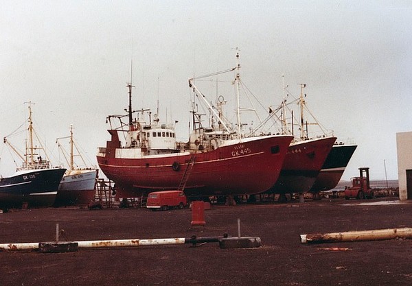 Mummi GK 120, óþekktur, Elliði GK 445, Jón Gunnlaugs GK 444 og sennilega Reynir GK 177