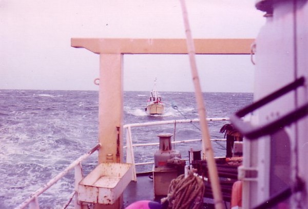 491. Katrín BA 71, í togi hjá Patreki BA 64, árið 1983 © myndir úr Flota Patreksfjarðar