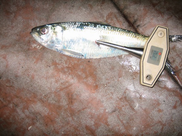 Hitastig mælt í sardínu © myndir Svafar Gestsson