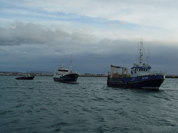 Hér sjáum við 1639. Hans Jakob GK 150, koma með 245. Steinunni Finnbogadóttur RE 325, til Njarðvíkur í dag og aðstoðar 2219. Seigur, bátanna © mynd Emil Páll í dag 13. nóv. 2009