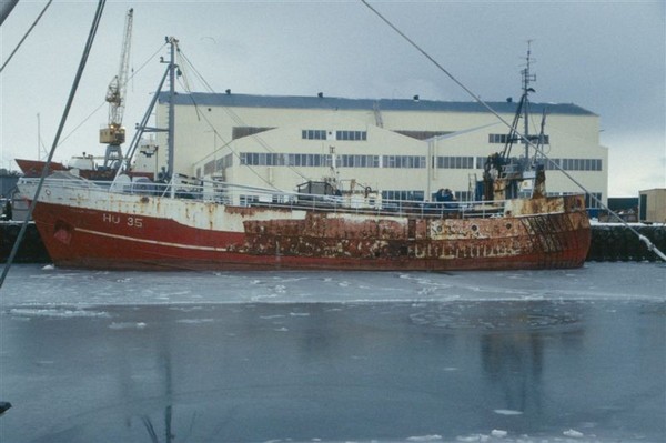 964. Gissur hvíti HU 35, brúarlaus við slippbryggjuna á Akureyri 1996