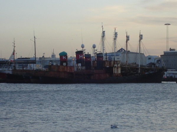 Freyr varð fyrst togarinn Ross Revenge og síðan útvarpsstöð og hér sjáum við hann sem útvarpstöð © myndir Shippotting.com