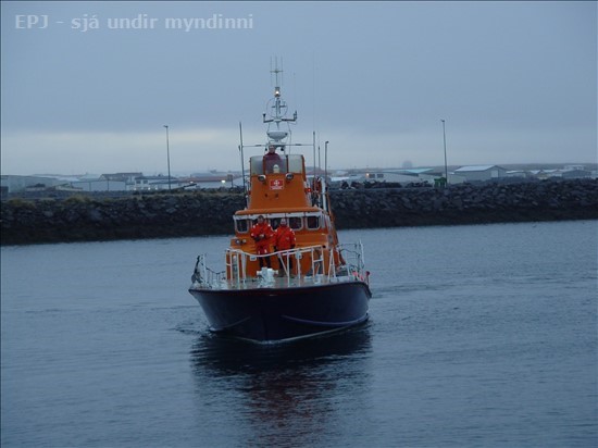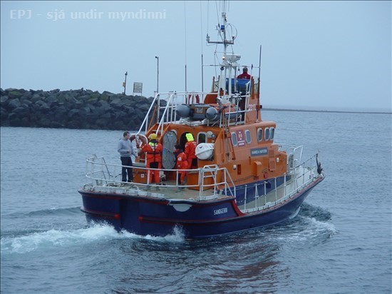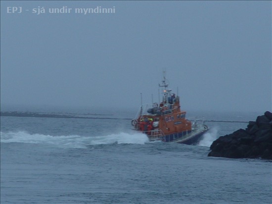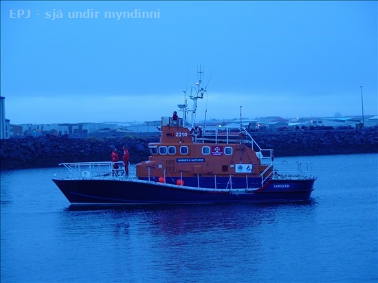 Hér birtist löng myndasyrpu er sýnir björgunarbátinn Hannes Þ. Hafstein fara út frá Sandgerði. Bátur þessi hét áður Oddur V. Gíslason og var frá Grindavík.