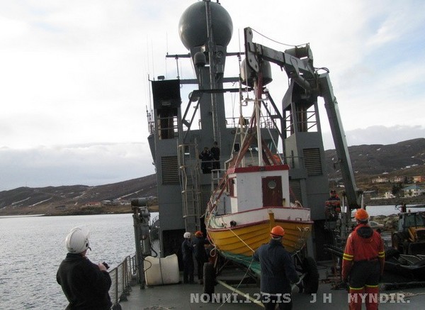 Kristín gamla var sett um borð í varðskipið Týr í dag, Stína gamla á að fara suður á Suðurnes.