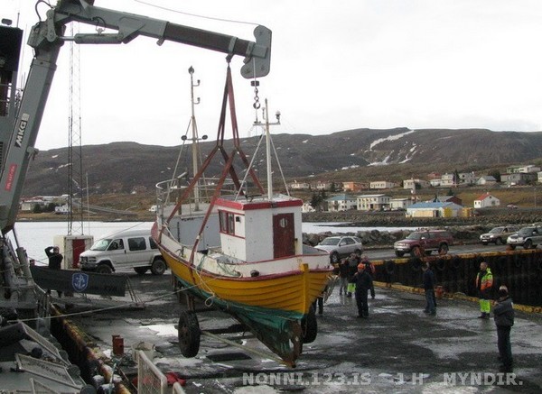 En hvers vegna skyldi báturinn vera tekinn upp einmitt nú. Ástæðan er sú að verið er að setja bátinn í geymslu sökum kvótaleysis og síðan á að nota tímann til yfirhalningar, svona eftir einhvern tíma.