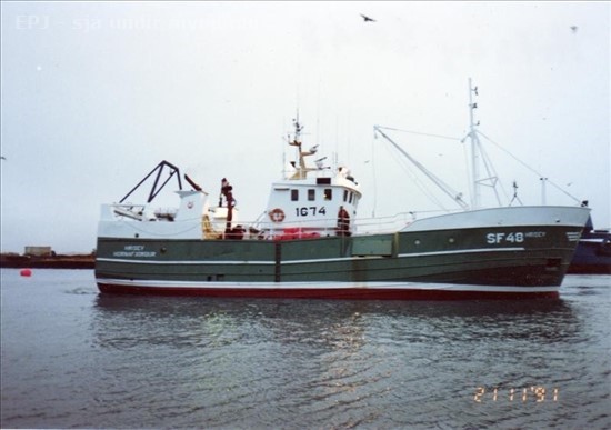 Skipasmíðastöð Njarðvíkur flutti inn þrjá skipsskrokka og kláraði tvo þeirra, en sá þriðji var fluttur aftur út hálf kláraður. Allir voru þeir að lokum seldir erlendis og er aðeins einn þeirra enn til og sá verður kynntur hér. Jafnframt birtast myndir af öllum nöfnum sem hann hefur borið, þ.e. er því fullt hús.