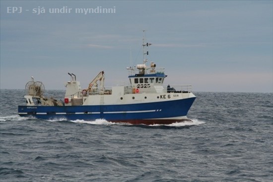 2673. Hópsnes GK 77, siglir fram hjá 1855. Ósk KE 5 sem kom úr slipp í dag © mynd Emil Páll 4. mars 2010