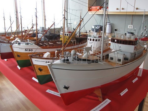Líkön af Sigurði SI 90, Ingiber Ólafssyni GK 35 og Maríu Júlíu á sýningunni í Grindavík © mynd grindavík.is