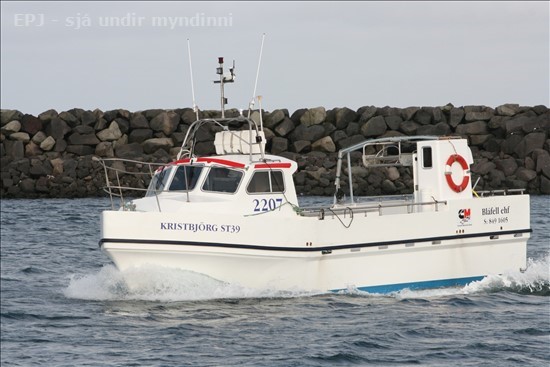Einhver bið hefur verið á því að Kristbjörg ST 39, sem byggð var nánast frá grunni hjá Bláfelli ehf., á Ásbrú (gamla varnarliðssvæðinu), færi norður og hef ég grun um að það tengdist eitthvað vélinni í bátnum. Í dag var henni hinsvegar prufusiglt út á Stakksfirði og tók ég þessar myndir þegar hann kom í land í Njarðvik eftir þá siglingu.