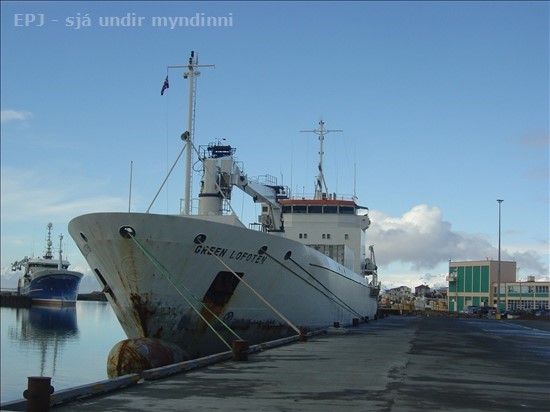 Loftur Jónsson sendi mér þessar myndir ásamt texta um tvö skip sem eru að hans sögn föst inni á Hornarfirði, vegna þess að ósinn er ófær þessa stundinna. Þetta eru Green Lofoten sem var að lesta freðfisk frá frystihúsinu og Wilson Leer að losa áburð frá Yara, en þeir hafa ákveðið að varpa akkerum, sjálfsagt til vonar og vara.