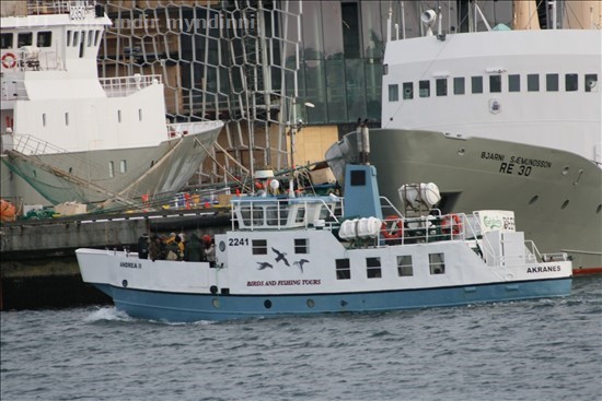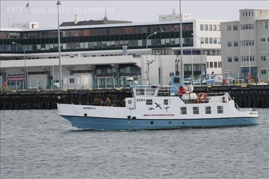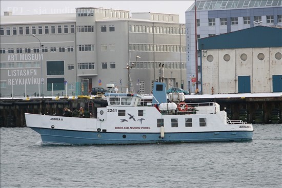 Næstu daga mun ég birta á fjórða tug mynda sem teknar voru á föstudaginn langa þ.e. 2. apríl 2010 í Hafnarfirði og Reykjavík. Birja ég með því að birta syrpu sem tekin var af Andreu II frá Akranesi, er hún fór með hóp fólks úr Reykjavíkurhöfn, sem ætlaði á sjóstöng. Sést fyrst þegar skipið bakkar frá bryggju og síðan eftir að hafa bakkað út í höfnina tók það snúning og sigldi síðan út. Fyrsta myndin er af einhverri ástæðu nokkuð skökk, en það verður bara að hafa það.