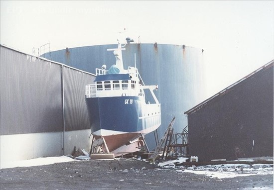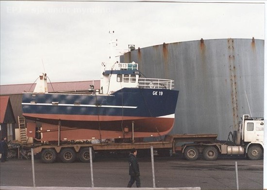Ég man ekki nákvæmlega hversvegna báturinn var við vélsmiðju Sverre Steingrímsen í Keflavíkurhöfn, en er þó helst á því að hann hafi verið kláraður þar og ég hafi þá tekið þessar myndir, en eitt er þó vist að báturinn var í upphafi sjósettur einmitt í Keflavíkurhöfn 14. apríl 1988