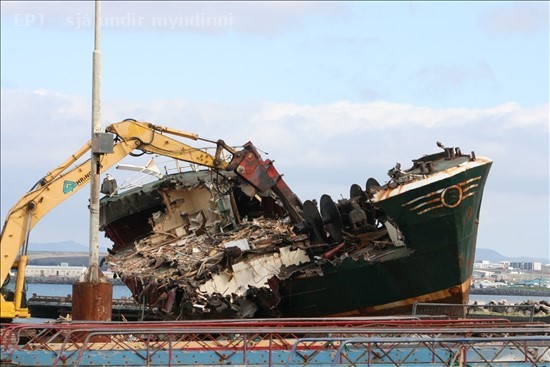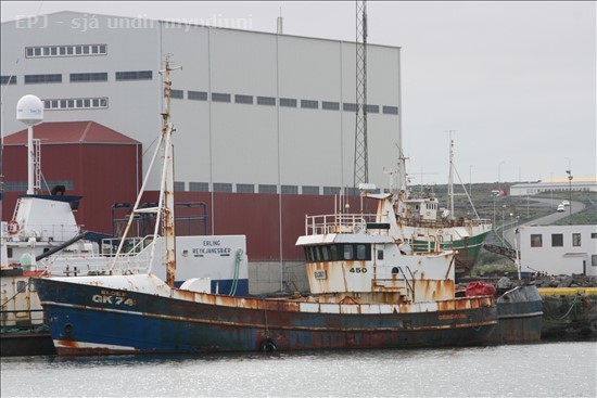 450. Eldey GK 74 í Njarðvíkurhöfn, en þangað var komið með bátinn í gær og herma fregnir að því að hann fari í Njarðvikurslipp og verður bútaður niður á eftir Valbergi II