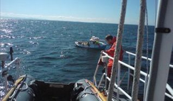 Jón Oddgeir kominn að þeim vélavana í morgun © mynd af vef Landsbjargar