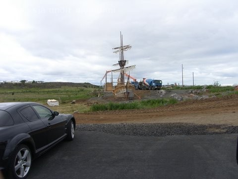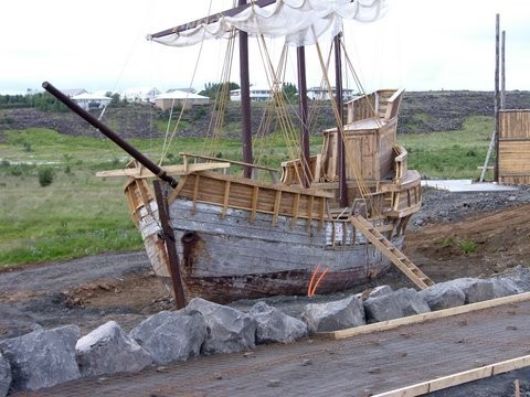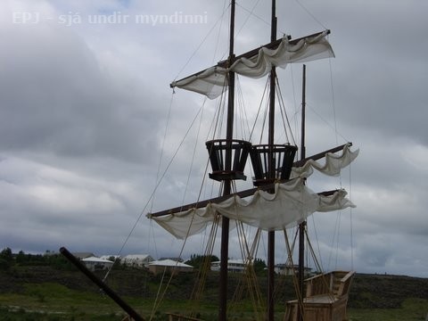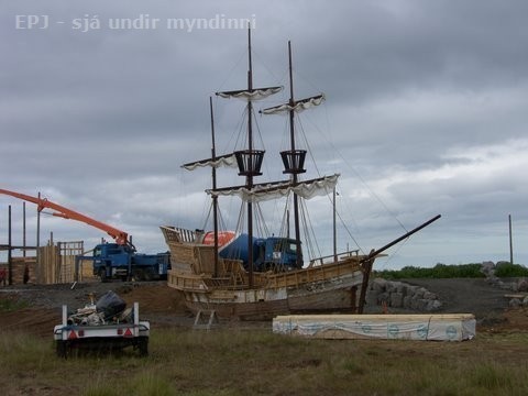 Nýverið var sagt frá því hér á síðunni að skrokkur Sólrúnar RE 22 sem stóð uppi í Njarðvíkurslipp hefði verið fluttur í skemmtigarðinn í Grafarvogi og þar yrði gert úr honum sjóræningjaskip. Sigurlaugur ljósmyndari okkar leit þar við og tók þessa myndasyrpu af stöðunni eins og hún var þá og eins er verið að breyta nágrenninu í sjóræningjastíl. Hvað um það hér sjáum við árangurinn