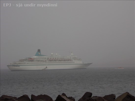 Skemmtiferðaskipið Albatros var á Grundarfirði í dag og þó nokkrir farþegar þess hafa verið á vappi þar þrátt fyrir að það rigni nokkuð vel. Tók Aðalheiður þessar myndir af skipinu í rigningunni í dag.