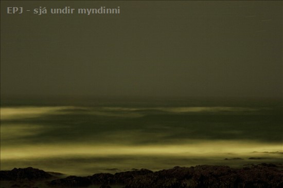 Guðmundur Falk sendi mér þessa mynd í nótt og fylgdi þessi texti með: Kominn heim af Norðurljósaveiðum á Krísuvíkurleið en enginn afli og kom því við og skaut einni af sundinu inn í Grindavík og var kominn kaldafíla og byrjað að brima kannski 3 metra ölduhæð