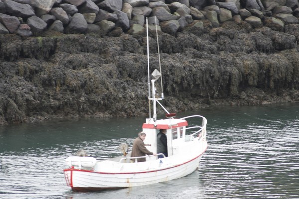 Hér sjáum við Gest leggja frá með hóp fólks til að sjá þegar tendrað voru ljósin á Friðarsúlunni í Viðey í gærkvöldi, en Sigurður Bergþórsson tók þessa mynd og sendi mér.