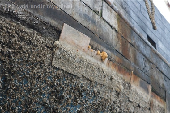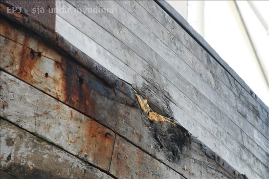 Við skoðun á gamla Halldóri Jónssyni SH, í Skipasmíðastöð Njarðvíkur kom í ljós að báturinn er það mikið ormétinn að hann er ónýtur. Enda eru liðin 17 ár síðan báturinn var dreginn frá Hornafirði til Hafnarfjarðar þar sem hann hefur legið við bryggju allan tímann og sokkið einu sinni. Að auki er hann mikið skemmdur eftir ís, er höfnin fraus, þannig að klaki var milli skips og bryggju, sést það vel á þeim myndum sem ég birti hér með, en sett hefur verið frauðplast í helstu skemmdirnar auk þess sem krossviður var settur yfir á sjólínunni.