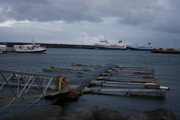 Flotbryggjan sem brotnaði í Sandgerði í óveðrinu á dögunum, ónothæf í dag © myndir Emil Páll, 27. des. 2010
