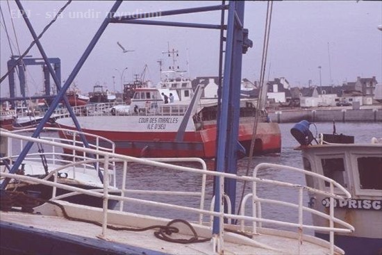 Bryggjan til vinstri á að standa beint út, en liggur í átt að næstu bryggju og þarna er búið að koma 1915. Fylki KE 102 í gagn til að hefja björgunaraðgerðir