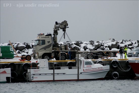 Báðir bátarnir komnir í sjó í Sandgerðishöfn. T.v. er 2389. Gísli BA 245 og t.h. er 2256. Guðrún Petrína GK 107 © myndir Emil Páll, 4. feb. 2011