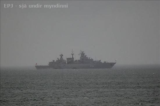 Hér eru myndir af þremur af þýsku fylgdarskipunum sem eiga að lenda í Reykjavík á morgun en eru fyrir akkerum hérna á Stakksfirðinum rétt í þessu en þetta eru F-215 Brandenburg og F-209 Rheinland-Pfalz. Sendandi myndanna er Guðmundur Falk. - Sendi ég honum kærar þakkir fyrir.
