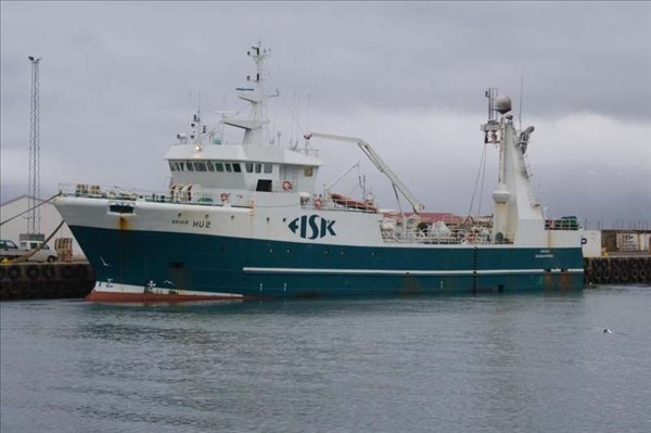 Þessi togari liggur nú rétt upp við land út af Vatnsnesi í Keflavík