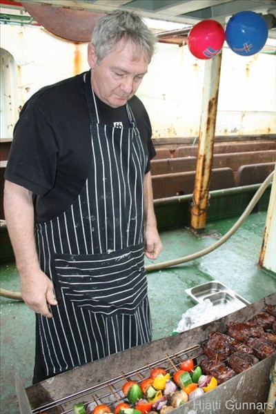 Vaktstjórinn mættur fyrstur að matarborðinu, á þjóðhátíðardaginn