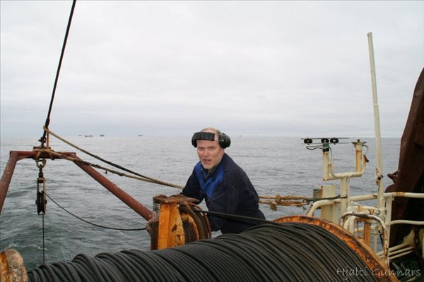 Strákarnir að byrja að spóla trollinu inn á vinduna