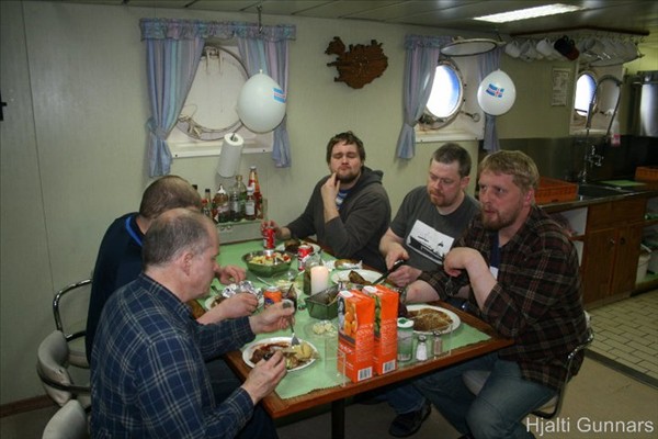 Fullskipað og menn gera þessu góð skil. Tóti að leita að einhverju til að toppa upp bragðið