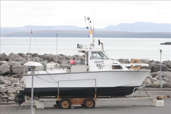 Að sögn hans þá rakst báturinn þó ekki á ísjaka, heldur kom gat kom á glertrefjar í botni bátsins.