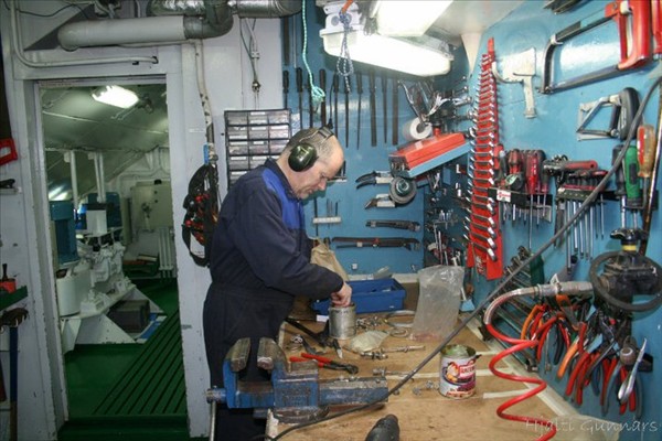 Stefán Finnbogason, 2. vélstjóri sinnir viðgerðum á verkstæðinu