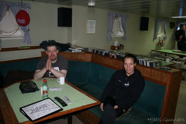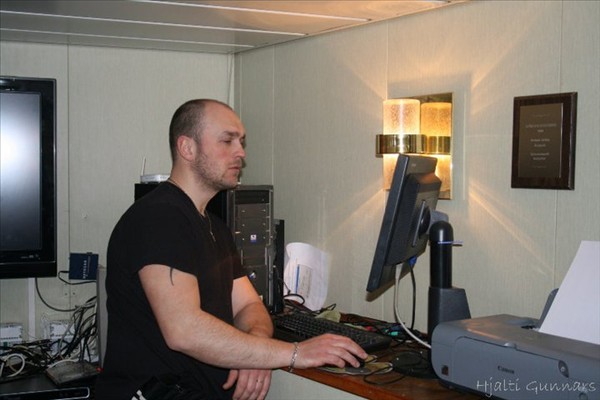 Þessi er yfirvélstjóri meðan Keli er í fríi og leikur sér í golfi frá morgni til kvölds