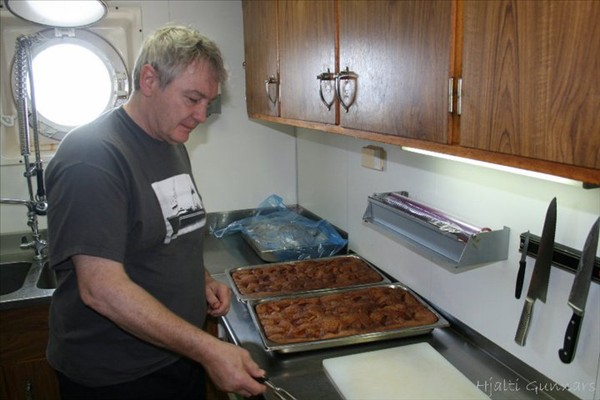 Siggi, búinn að baka eplaköku til að hafa með kaffinu