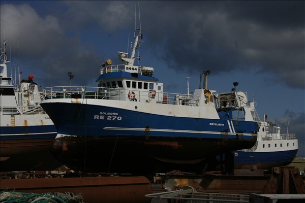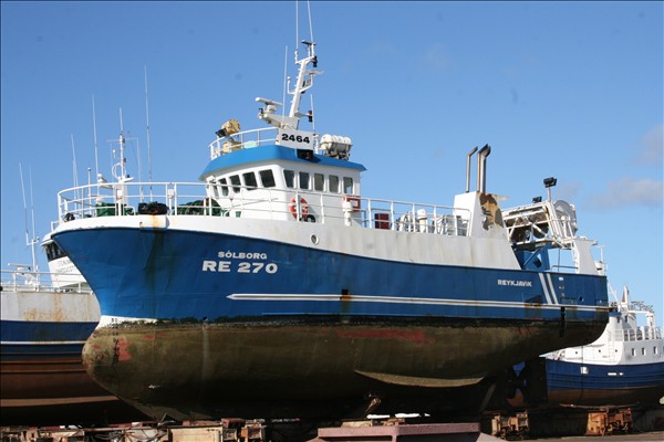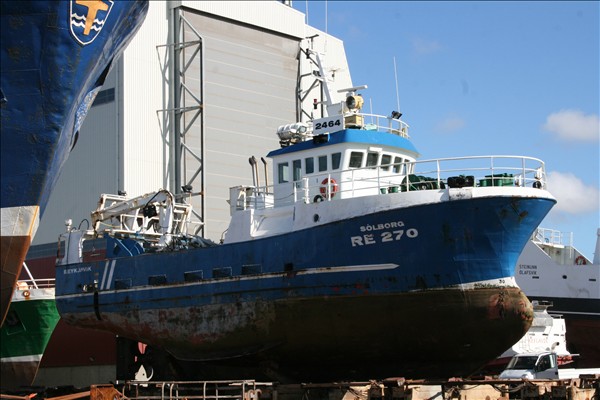 2464. Sólrún RE 270 nýkomin upp í Njarðvikurslipp eftir hádegi í dag