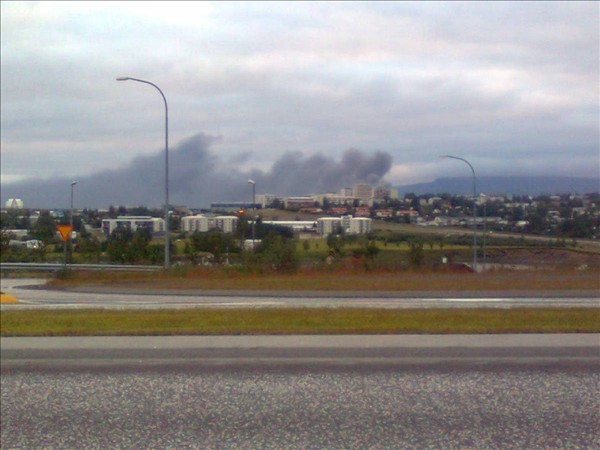 Reykurinn frá dekkjabrunanum í Hringrás í Reykjavík í morgun © símamynd Þorgrímur Ómar Tavsen, 12. júlí 2011