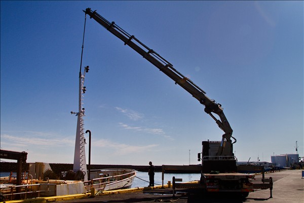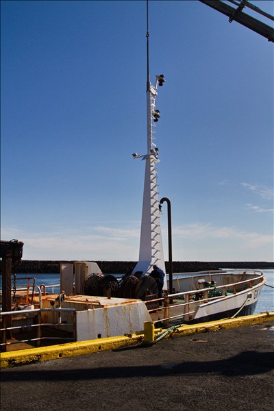 Hérna eru tvær frá því í dag og eru frá því þegar formastrið var híft á Mörtu Ágústsdóttir. En ljósmyndari er Guðmundur Falk og eins og menn muna af fyrri skrifum er mastur þetta af Súlunni EA sem fór í pottinn til Belgíu.