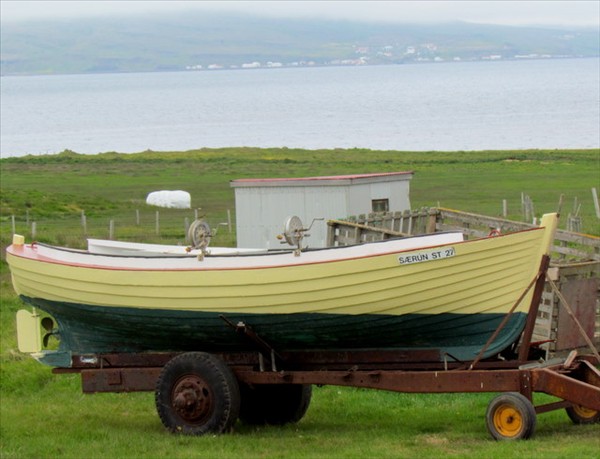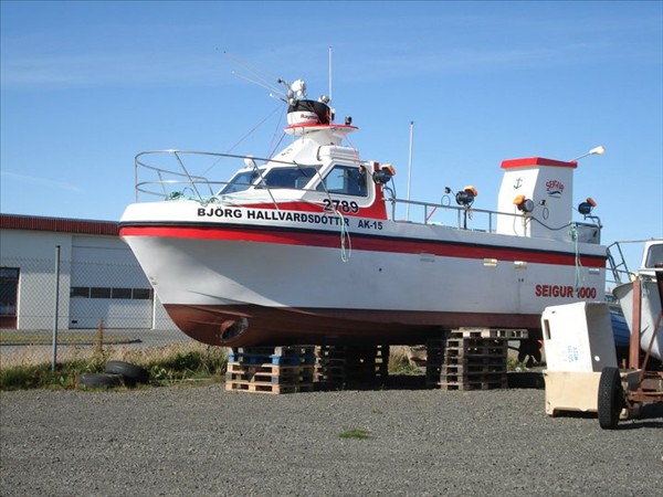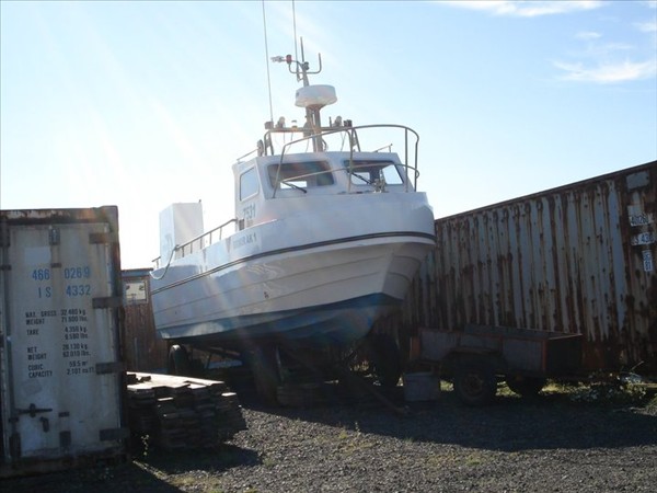 Birti ég því mynd af bátnum í húsnæði eigandans, eins og hann leit út í maí sl.
