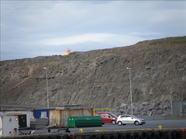 Þarna efst sjáum við Hólmsbergsvita frá öðru sjónarhorni en venjulega þ.e. úr Helguvík © mynd Emil Páll, 15. ágúst 2011
