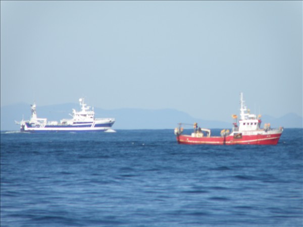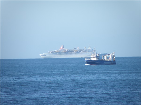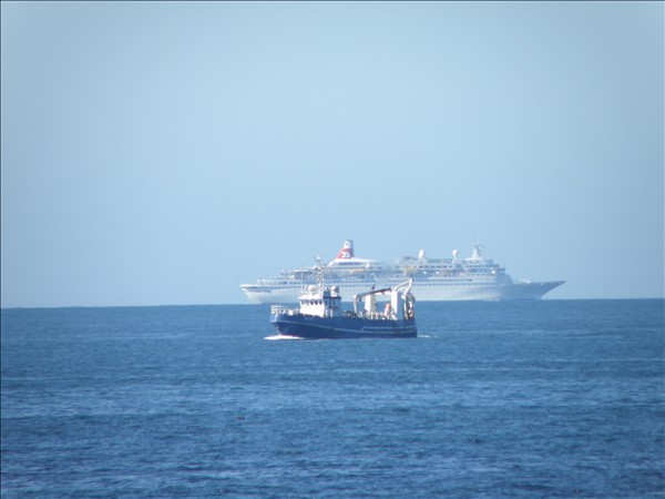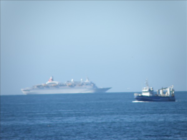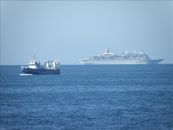 1639. Tungurfell BA 326 og Boudicca, í dag austur af Sandgerði, Skemmtiferðaskipið á leið inn í Faxaflóa en báturinn á leið til Sandgerðis © myndir Emil Páll, 7. ágúst 2011