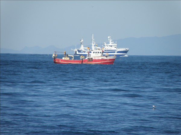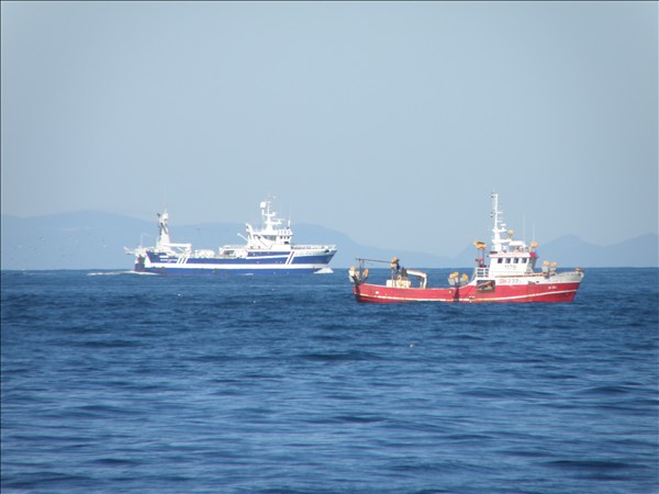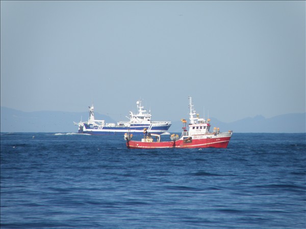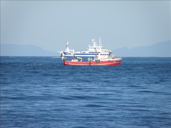 Hér er smá syrpa þegar togarinn nálgast bátinn sem var þarna á makrílveiðum úti af Garðskaga í dag. Sér myndir af hvoru skipi fyrir sig koma síðar.