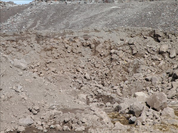 Hér sést greinilega hvenig búið er a ðmoka í sundur leiðina upp á BJÖSSAHÓL © myndir Emil Páll, 6. ágúst 2011