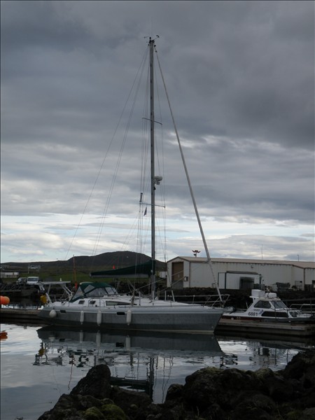 Óþekkt skúta í Grindavík í morgun © myndir Emil Páll, 4. ágúst 2011
