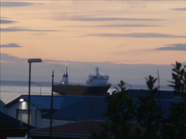 Heiða Lára tók þessa mynd skömmu fyrir kl. 23 í gærkvöldi og sendi mér þá strax. Sýnir myndin er skipið var að koma inn til Grundarfjarðar