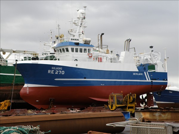 2464. Sólborg RE 270, eftir að búið var að hífa hana aðeins upp aftur