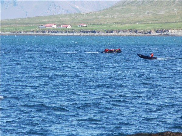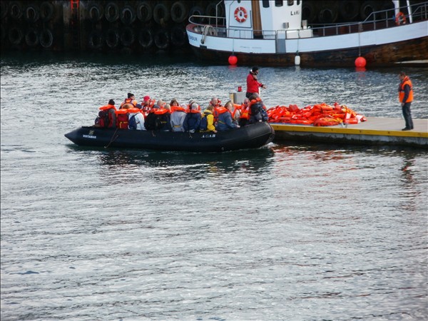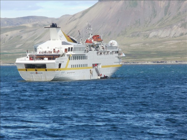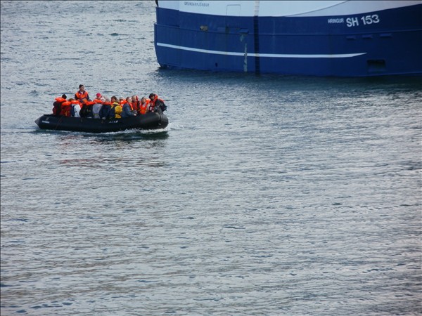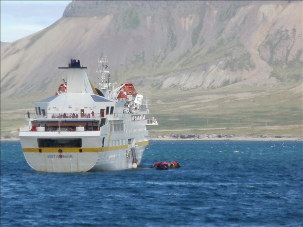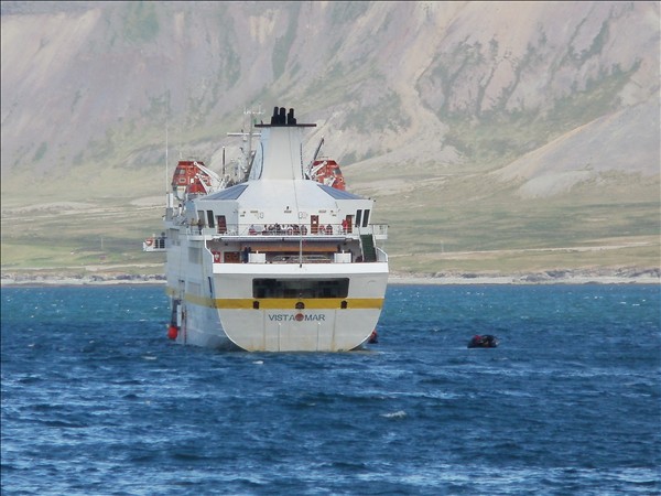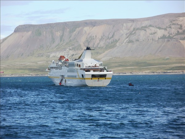 Vistamar og léttabátarnir á Grundarfirði í dag, en skipið kom þangað kl. 13 © myndir Heiða Lára, 1. ágúst 2011